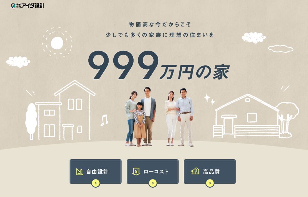 アイダ設計の「999万円の家」は、コストをできるだけ抑えてマイホームを手に入れたい方にぴったりの住まいです。