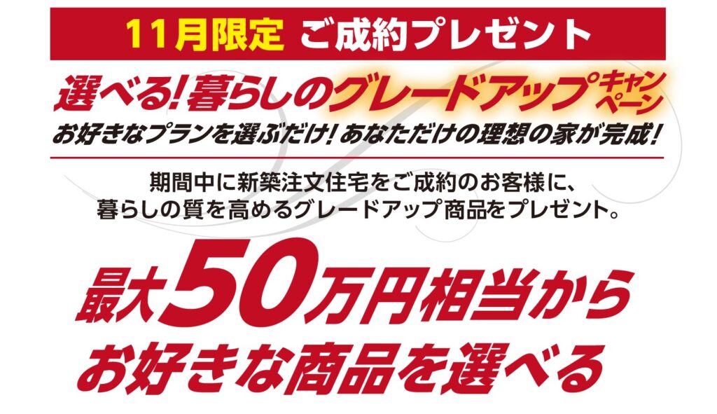 期間中(11/1~11/30)に注文住宅の対象商品をご契約された方に、