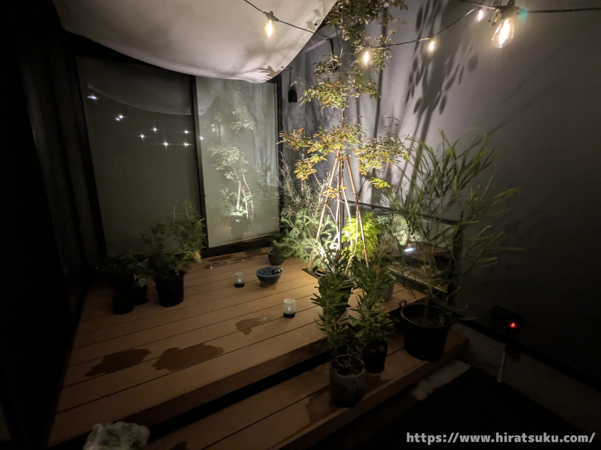 平日は中庭をほとんど使うこともなく、部屋の中からライトアップされた植栽を鑑賞するような感じです。