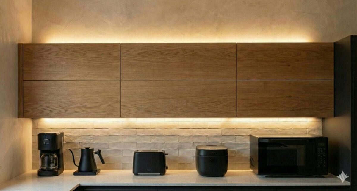 SNSなどで、間接照明が仕込まれたおしゃれな吊戸棚を見ると、