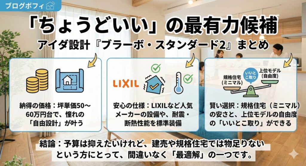 ローコスト住宅を検討中なら、アイダ設計の「ブラーボ・スタンダード2」は外せない候補。