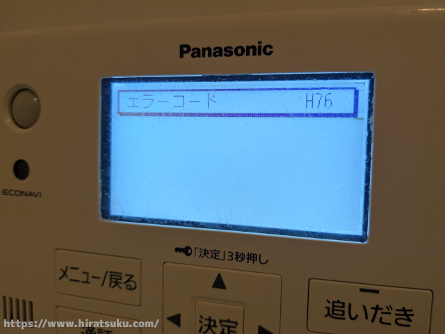 「エラーコードH76」によりエコキュートのリモコンが操作できなくなりました。