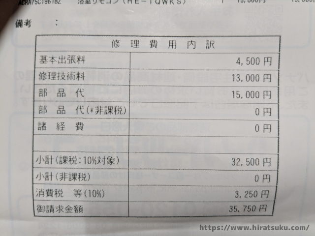 我が家の場合、メーカー修理をお願いしたところ約36,000円ほどかかりました。