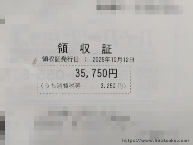 領収書をもらい、作業完了のサインをして終わりです。