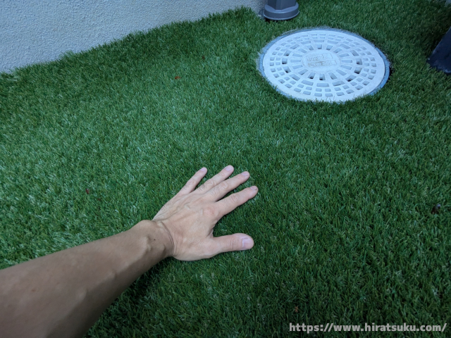 実際にゲリラ豪雨や台風クラスの雨が降ると、人工芝の上に一時的に水たまりができます。