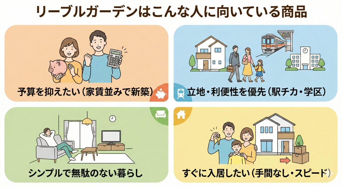 リーブルガーデンは、以下のような考えをお持ちの方に特におすすめできる住宅です。